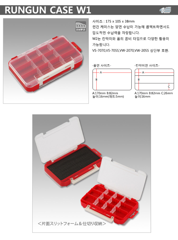 이 제품들의 또 하나 특징으로는 조립이 가능하다는 것. 조립해서 양면 웜보관 케이스로 사용이 가능하다. 양면케이스로 조립시 높이가 30mm 정도로 일반 배스낚시에 사용되는 웜케이스와 동일하니 이것 또한 장점이라 할 수 있다.