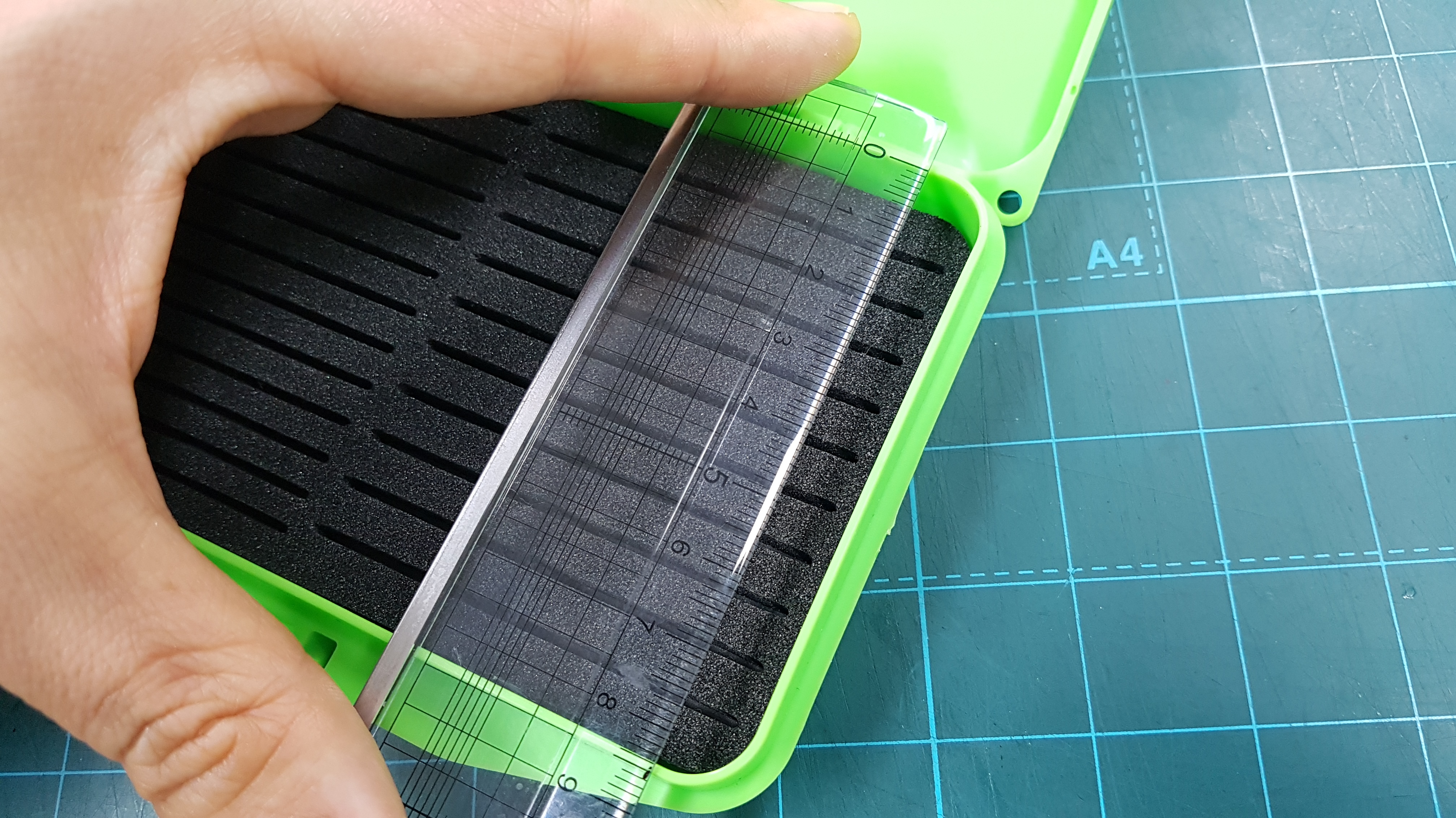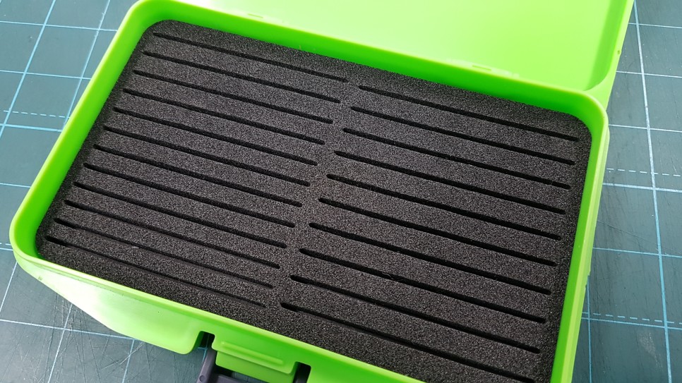 슬릿폼 좌,우의 지그헤드 보관시 사용되는 틈새 간격이 다르다. 좌측은 경량지그헤드, 우측은 고중량 지그헤드 보관에 사용하면 딱 좋을듯.